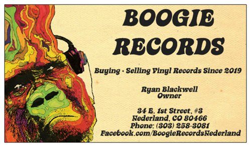 Boogie Records Back to Main Directory | Back to All Categories Verified Retail, Miscellaneous Get Directions By public transit Walking Bicycling 34 East 1st Street Nederland Colorado 80466 US 303-258-3081303-258-3081 blackwellr71@gmail.com Buying and Selling Vinyl Records, CDs, and turntables since April 2019. Bookmark